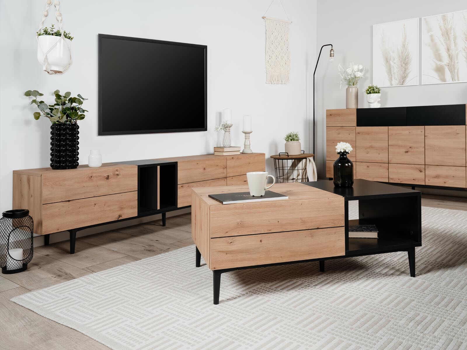 Commode NOLLY 5 deuren 2 lades zwart/artisan eik