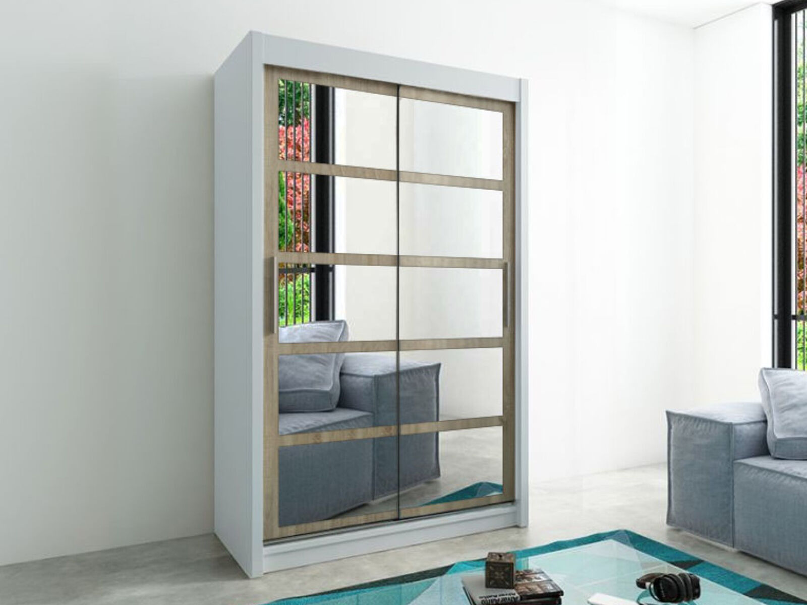 Deze charmante kleerkast uit de ROMELU-collectie zal iedereen kunnen verleiden met zijn uniek design. De combinatie van soberheid en moderniteit creëert een vleugje klasse aan uw interieur. Ook het praktische aspect zal u zeker kunnen bekoren. De kast bevat namelijk twee garderobestangen en vijf opbergvakken. Perfect dus voor al uw kledij, jassen en/of schoenen. Dankzij de handige spiegels kunt u uw outfit dagelijks checken. De afwerking in kwalitatieve spaanplaat zorgt voor een robuustheid en een lange levensduur. Twijfel niet meer en bestel deze super praktische kleerkast nu aan een uitstekende prijs-kwaliteitsverhouding!