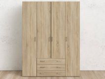 Op zoek naar een eenvoudige en efficiënte kast? Dan is deze kast uit de SPACIO-collectie zeker iets voor u! Uitgerust met 4 deuren en 3 lades, bevat kast SPACIO heel wat functionele opbergruimte. Met maar liefst 11 opbergvakken en één garderobestang, heeft u zeker plaats genoeg voor al uw kleren. Van Scandinavische makelij en afgewerkt in hoogwaardig spaanplaat, biedt deze collectie u stevigheid en kwaliteit. Twijfel niet, neem een kijkje naar de andere meubelen uit de SPACIO-collectie en creëer een harmonieus ensemble!