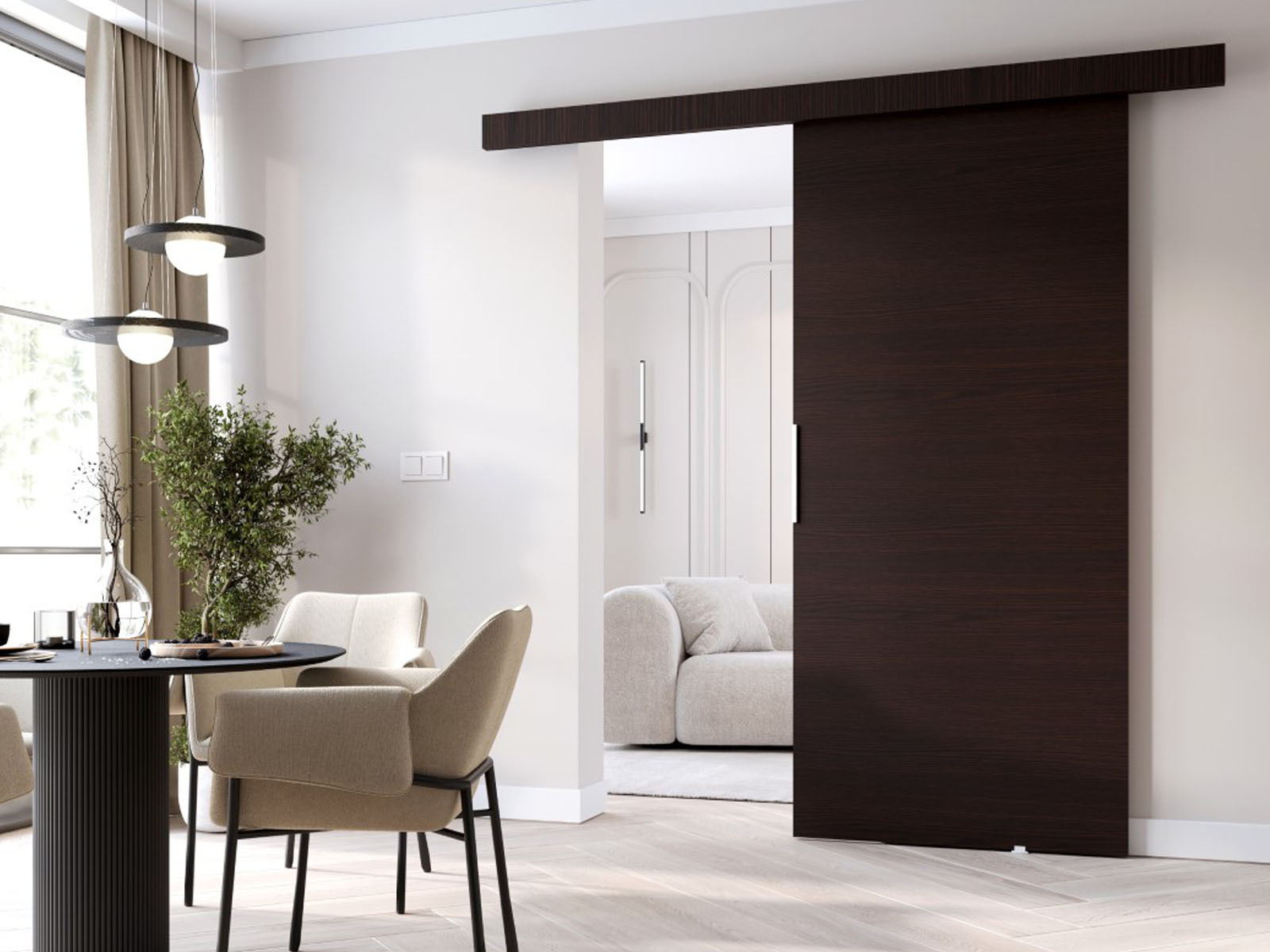Met deze trendy schuifdeur CLENATO kan je heel gemakkelijk een scheidingswand creëren in werkelijk elke ruimte! De deur is gemaakt van 16 mm dik gelamineerd spaanplaat en wordt bevestigd op een stevige, metalen rail. Super handig, de deur heeft geen vaste richting zodat je zelf de openingszijde (rechts of links) kan kiezen tijdens het monteren.