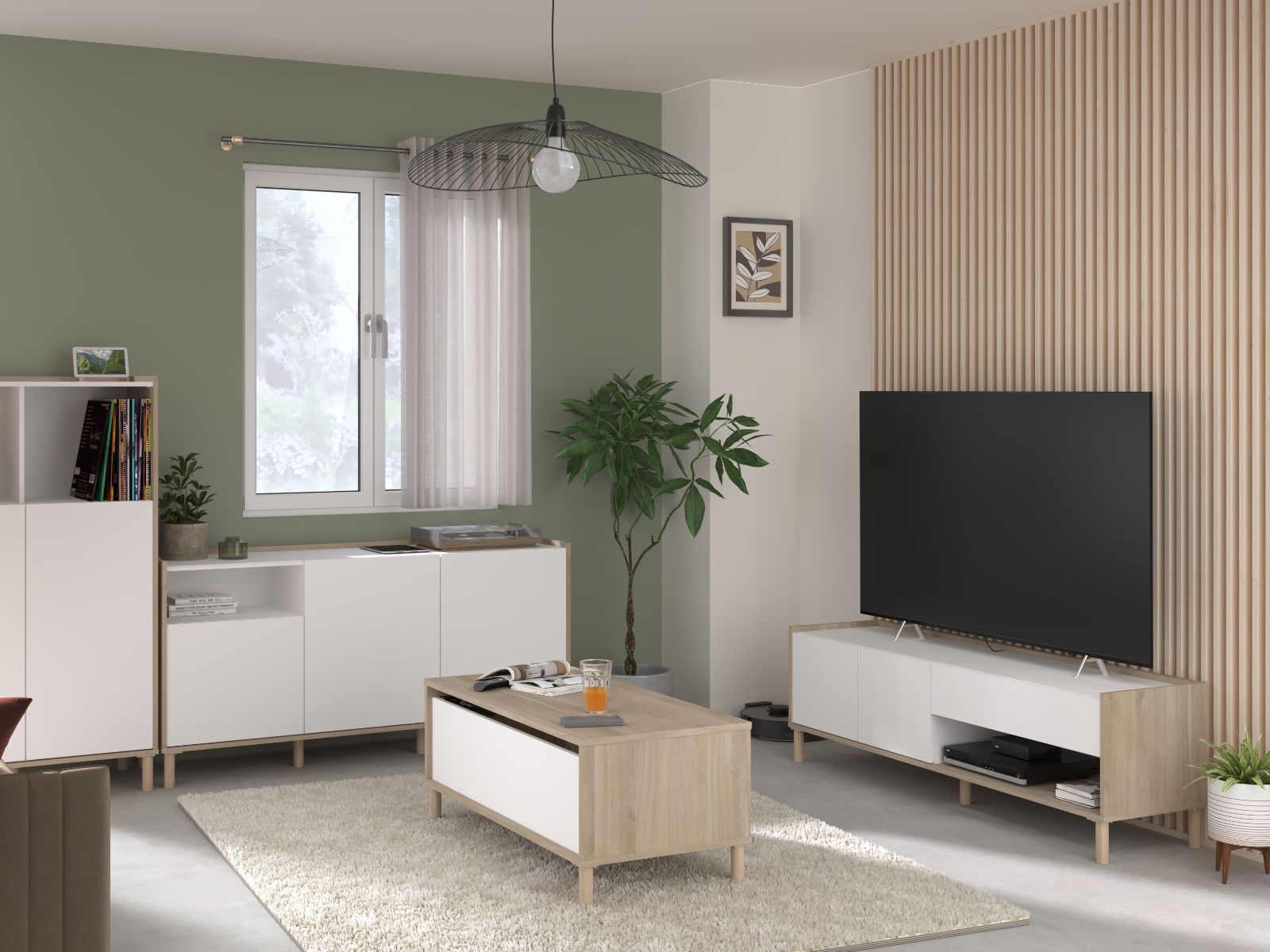 Tv-meubel MORPHEE 2 deuren 1 lade 150 cm japanse eik/wit