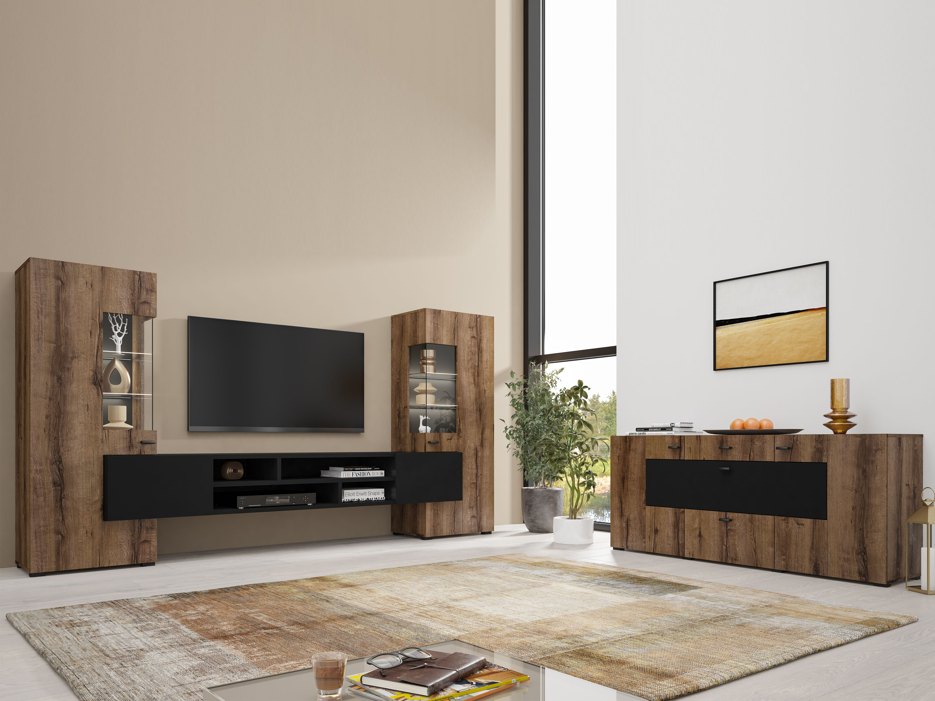 Tv-meubel set KODI 4 deuren wotan eik/zwart
