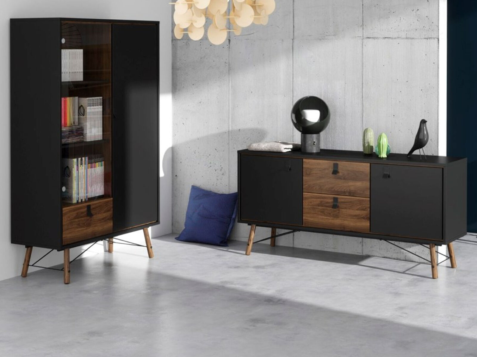 Vitrinekast RYO 2 deuren 1 lade walnoot/zwart