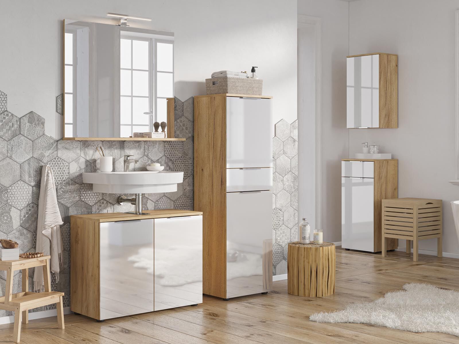 Wastafel kast AVIA 2 deuren navarra eik/hoogglans wit