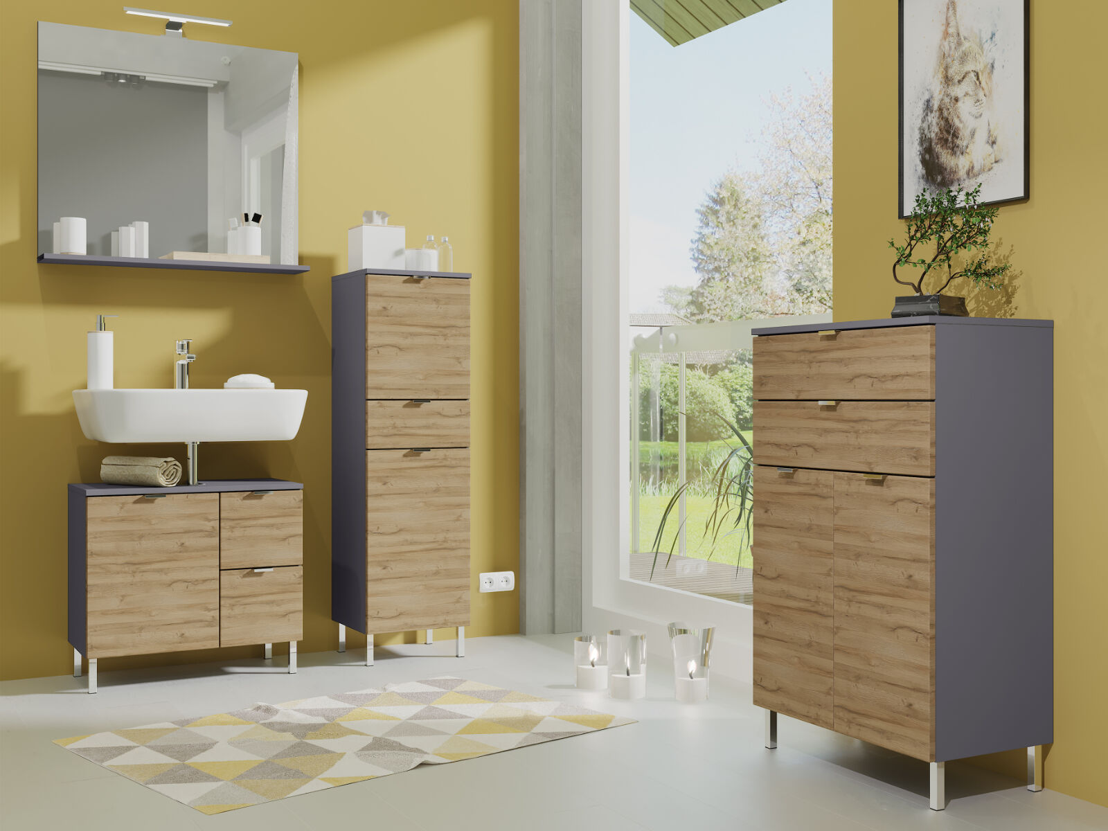 Deze wastafel kast uit de MANAU-collectie creëert een vleugje authenticiteit en elegantie in uw badkamer. Uitgerust met een deur en twee lades, biedt deze kast u zeker voldoende opbergruimte. De lades openen en sluiten bovendien zeer gemakkelijker dankzij de schokdempers. Al uw badkamerspulletjes zullen vanaf nu een plaatsje krijgen! Met deze wastafel verbergt u de sifon van uw lavabo op een gemakkelijke